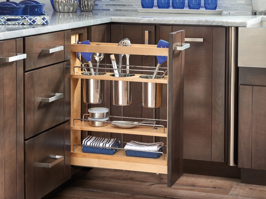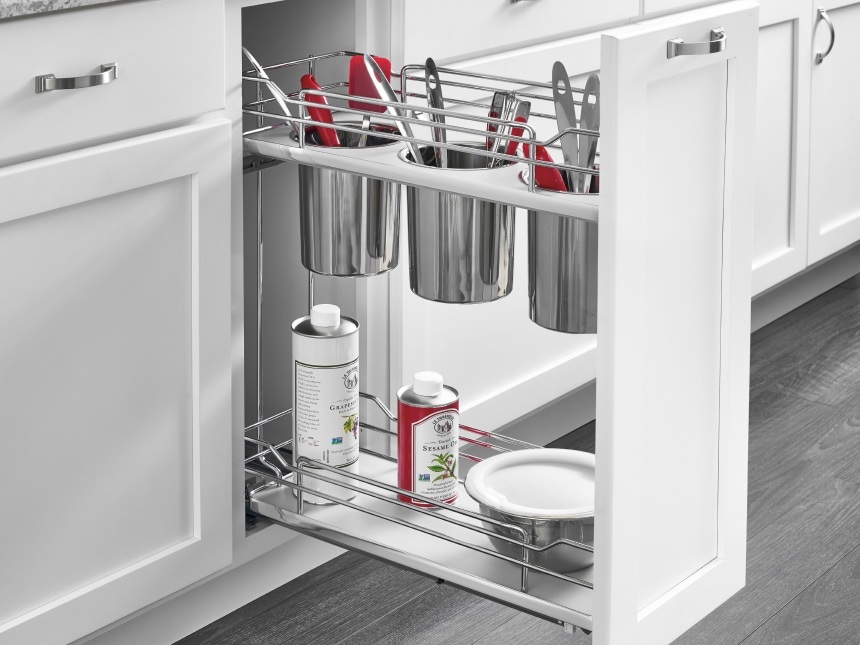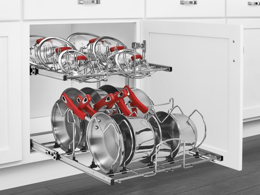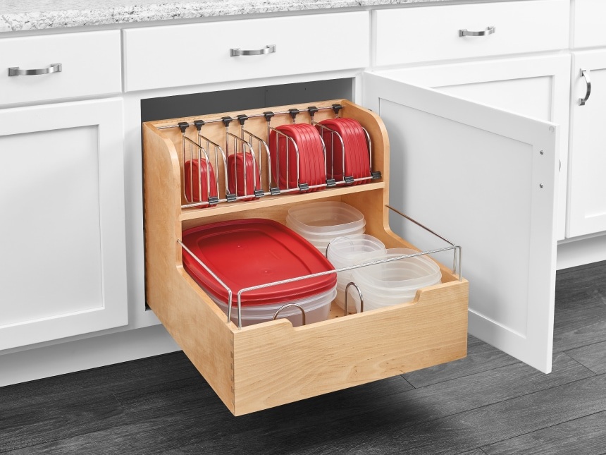 Explore our diverse range of base cabinet accessories, designed for optimal functionality and convenience. From our Two-tiered cookware organizer and tray divider with clips to our food storage container organizers, pullouts, and more, we have everything you