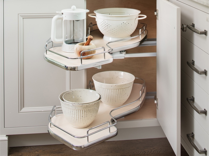 Optimize your corner cabinets with corner accessories, turning hard-to-reach places into valuable and accessible solutions. Single-blind corner organizers and half-moon Lazy Susans ensure a fully utilized and streamlined storage system for your convenience.