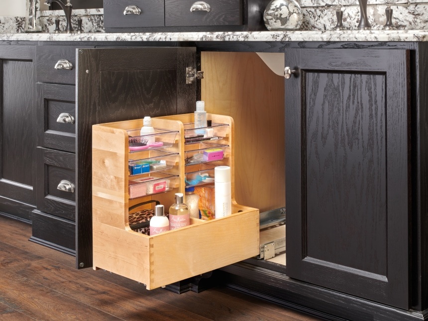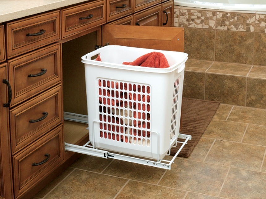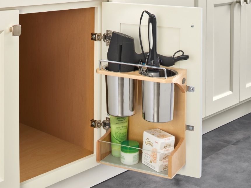 Organize your products and store your small appliances with accessories designed specifically for your vanity. Add a waste container or hamper to discreetly stow items.